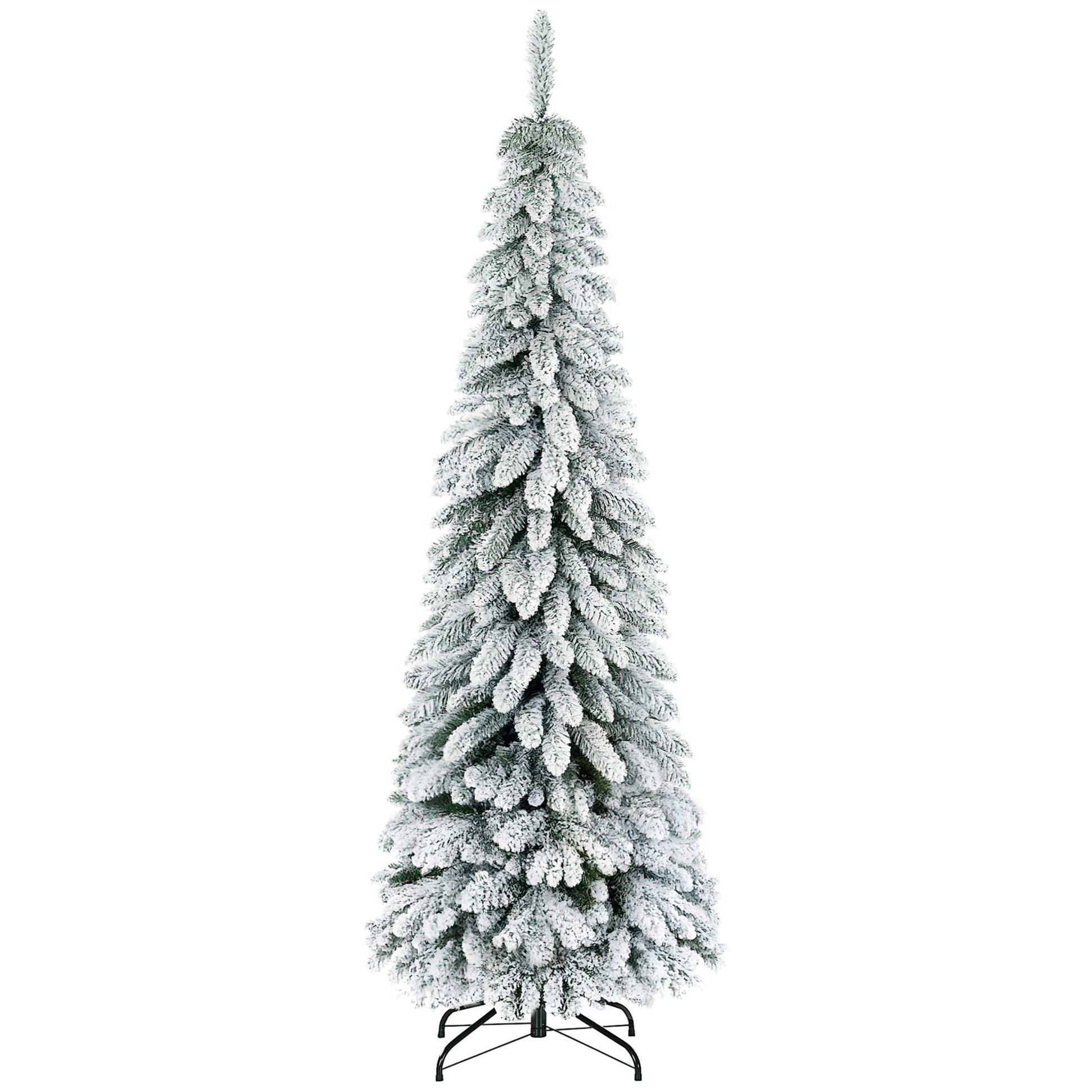 6' Artificial Slim Flocked Christmas Trees, With Snow Frosted Branches, Downswept Shape, Steel Base