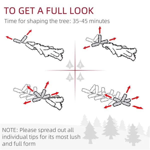 - In order to get a full appearance, please spread out all individual tips to get optimally possible look from the tree, suggest you to take 35-45 minutes to shape the tree.