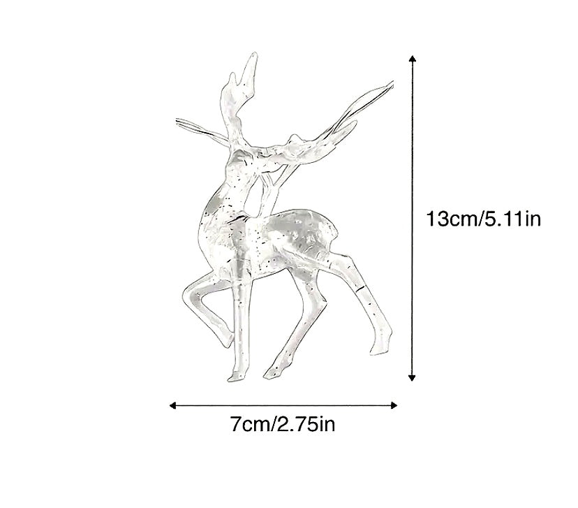 Each reindeer is crafted from clear acrylic and lights up with a warm, cozy shimmer — perfect for creating a festive atmosphere on Christmas trees, mantles, bedrooms, tables, and window displays.