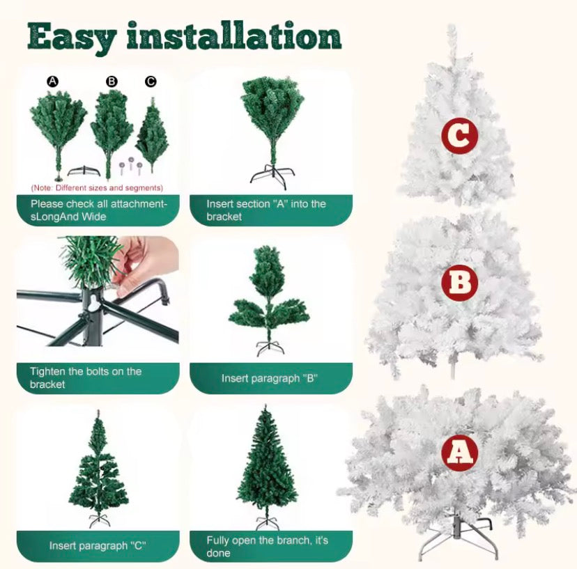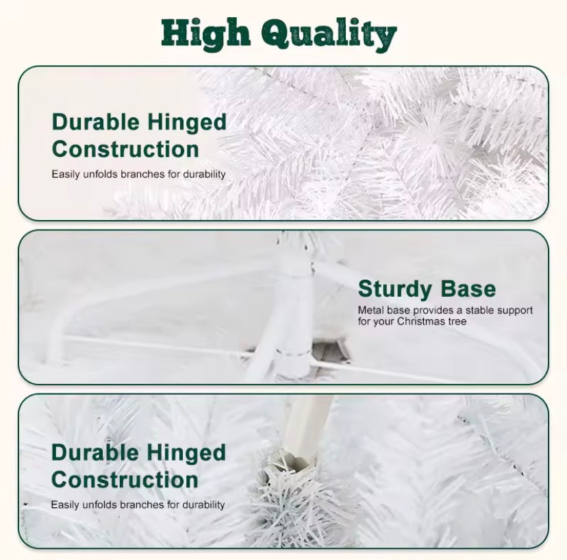 7FT White Christmas Tree with Metal Base – Fluffy PVC 1000 Branches for Holiday /Xmas Decor, No Ornament